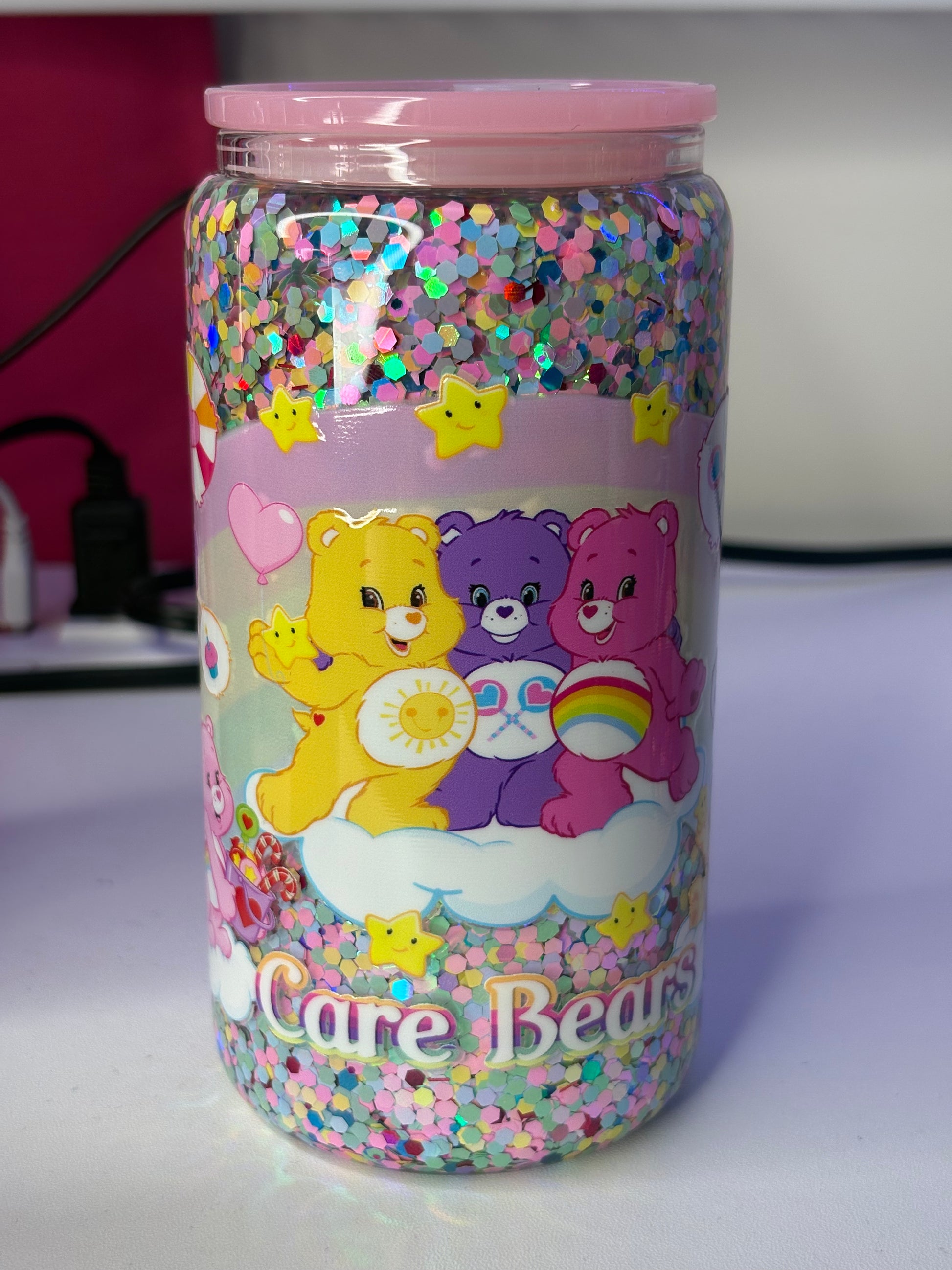 Three bears 16oz Glass Snowglobe Cup
